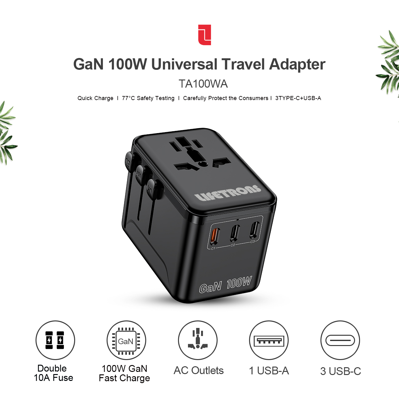 • The 5th GaN age 100W SUPER fast charge with 4 ports(One USB-A and three USB-C ports).