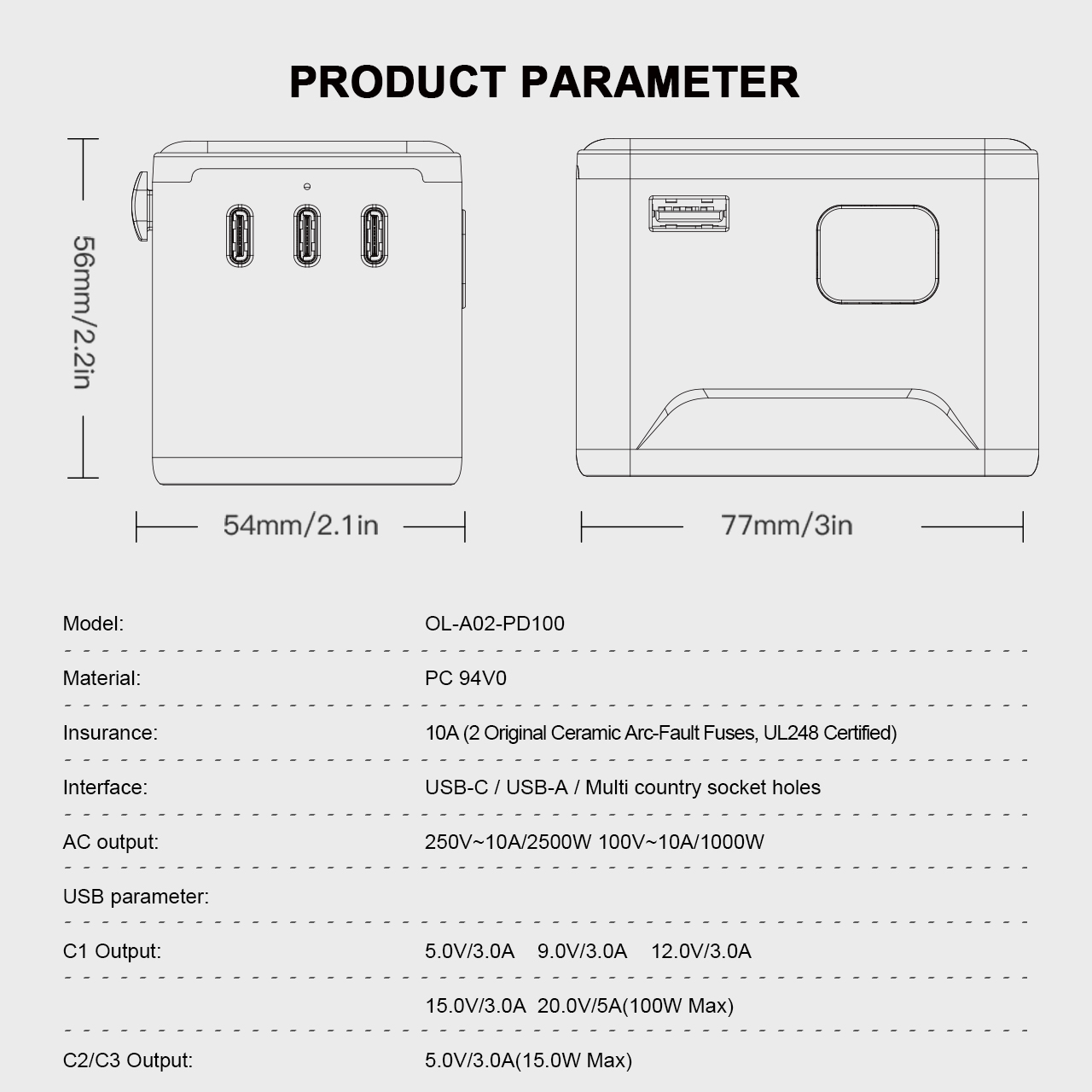 • Applicable to over 180 countries with 4 built-in plugs included: US, AU, EU, and UK (UK pin sealed according to HK regulation).