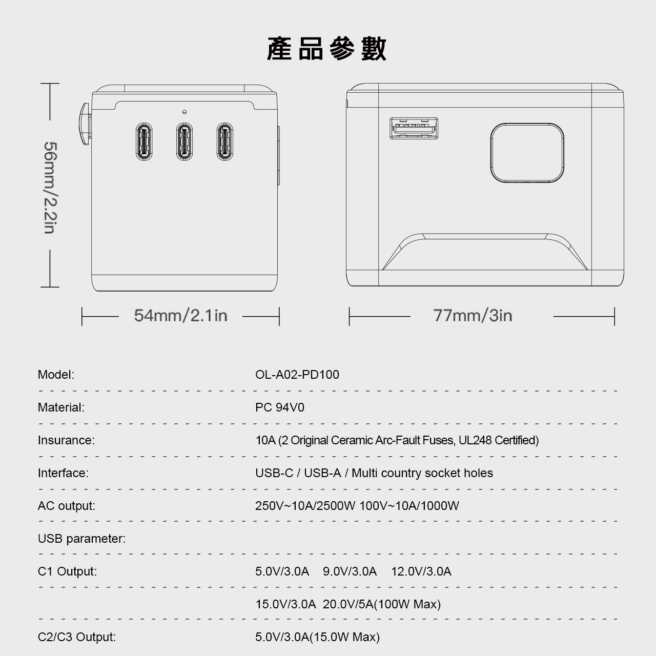 • 界面:3* USB-C/ 1*USB-A/多國插孔