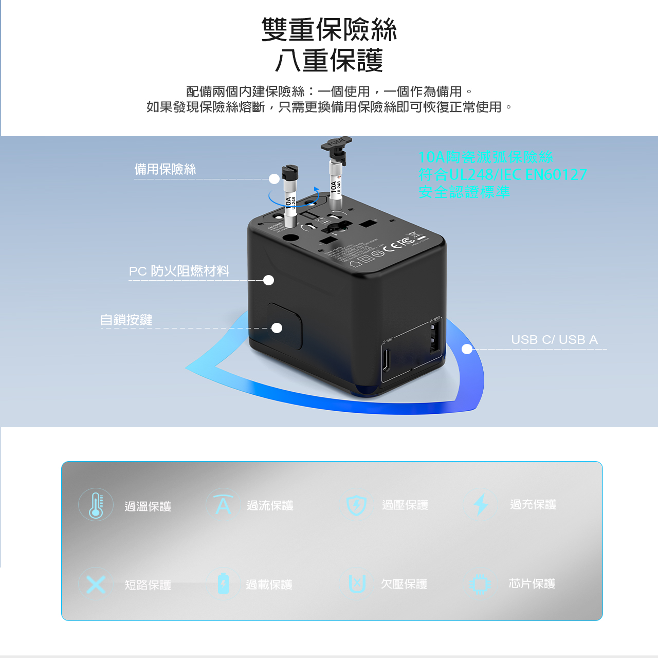 • 內置兩組保險絲