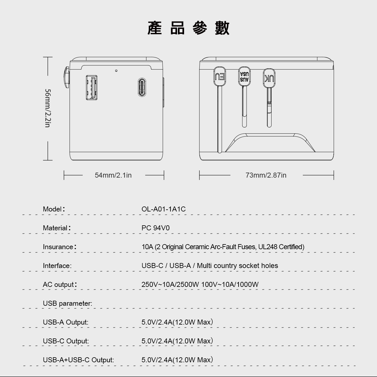 • 界面:USB-C/ USB-A/多國插孔